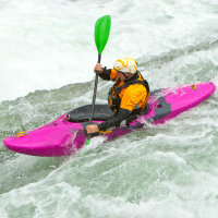 You can get yourself on the rapids in a variety of boats. Most people start in a fairly standard closed cockpit kayak or in an open canoe on rivers with just a bit of current and some fairly small rapids and or weir shoots. Another route onto the rapids for the first time is rafting. With an experienced helm you can get started in a raft as a member of a team on some quite exciting water and there are plenty of companies that run rafting as a commercial enterprise who are happy to scare you to whatever level you feel comfortable with! The challenge of developing your own personal whitewater canoeing and kayaking skills to handle increasingly challenging and exciting water appeals to many. Whether you fancy a couple of hours on your home rapids, a day trip down a well known river with a few exciting rapids or a tour of a raging river in a far off country there is a level of white water paddling suited to your level of courage waiting for you to try! There are also options to get involved in competitive canoeing and kayaking on white water. In the Olympic discipline of slalom, poles are hung over rough water and both canoes and kayaks are challenged to follow a predetermined course without hitting the poles in the minimum possible time. In white water or down river racing paddlers head down river against the clock as fast as possible over shorter "sprint" courses or longer "classic" courses. Then there is freestyle where paddlers show of their ability to make their boats do tricks on rapids with judges determining the winner based on a scoring system.