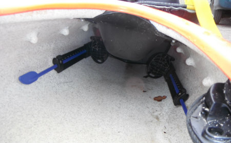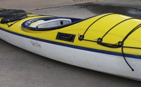 Deck elastic to tuck items into whilst paddling and adjustable skeg leverMost sea kayaks have various points on the deck (often with recessed mouldings) with fittings that can be used to attach elastic netting to retain loose items and other gadgets. Make sure your spare split paddles fit somewhere without interfering with your paddling and be sure you can locate your compass and or other gizmo's within easy view and reach. Some boats will have a compass built into the deck.